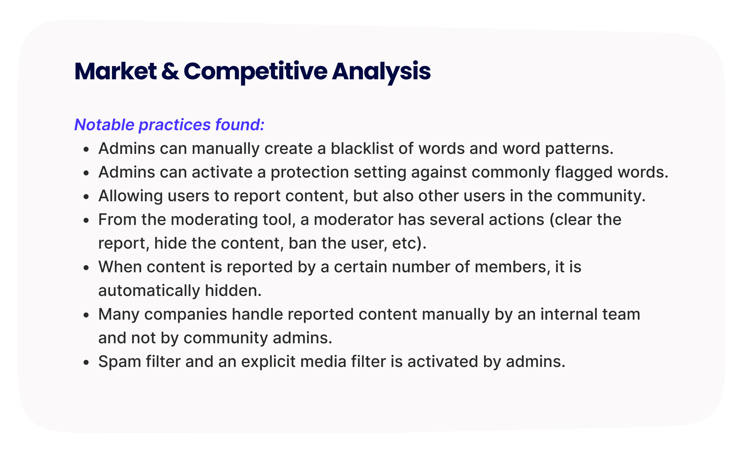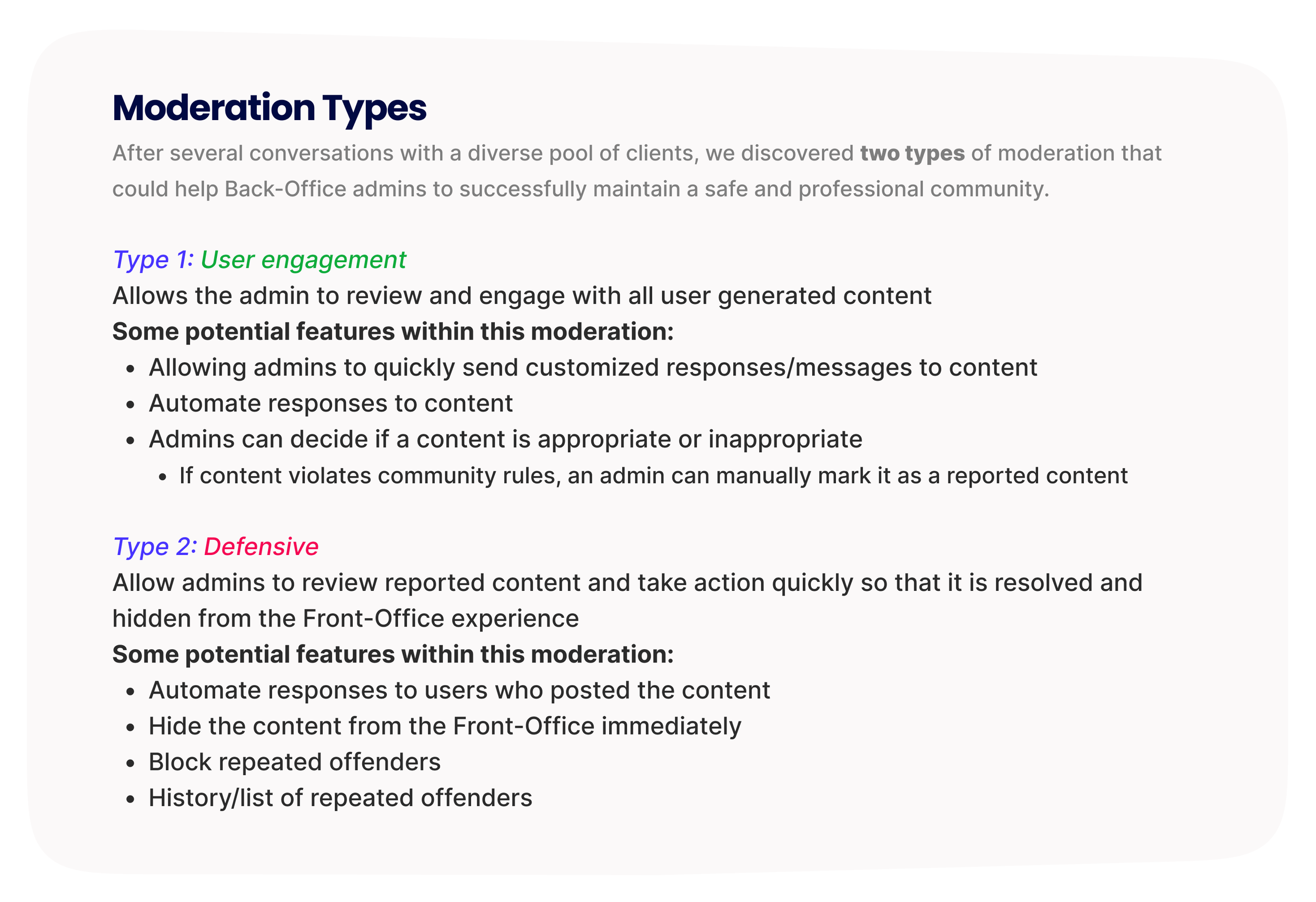 Community platforms lack a smart system to filter and monitor constant new content generated by members. With 60% of clients being major universities or education organizations, this feature is highly demanded to promote more safety/professionalism and to help protect communities from harmful or disruptive content.